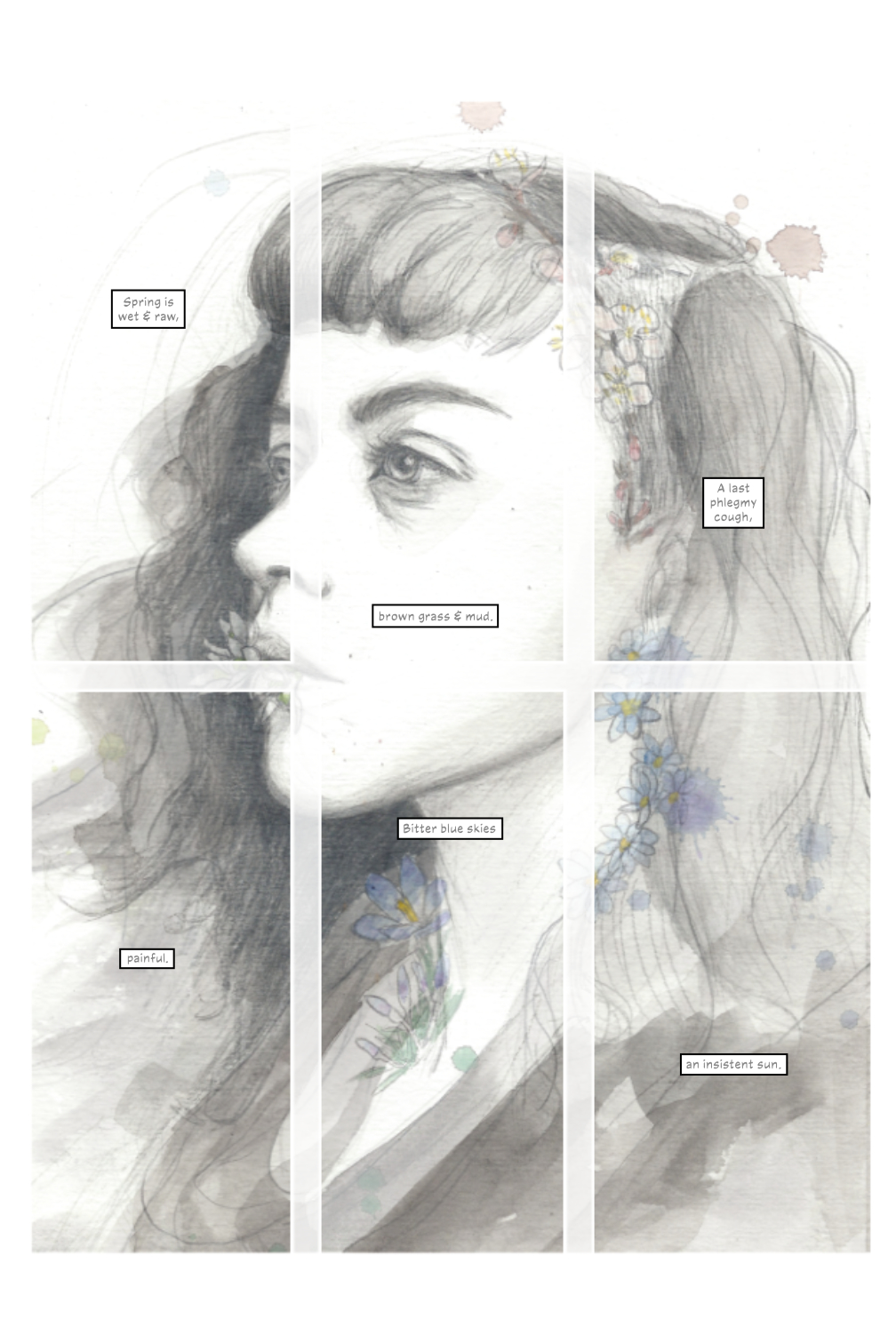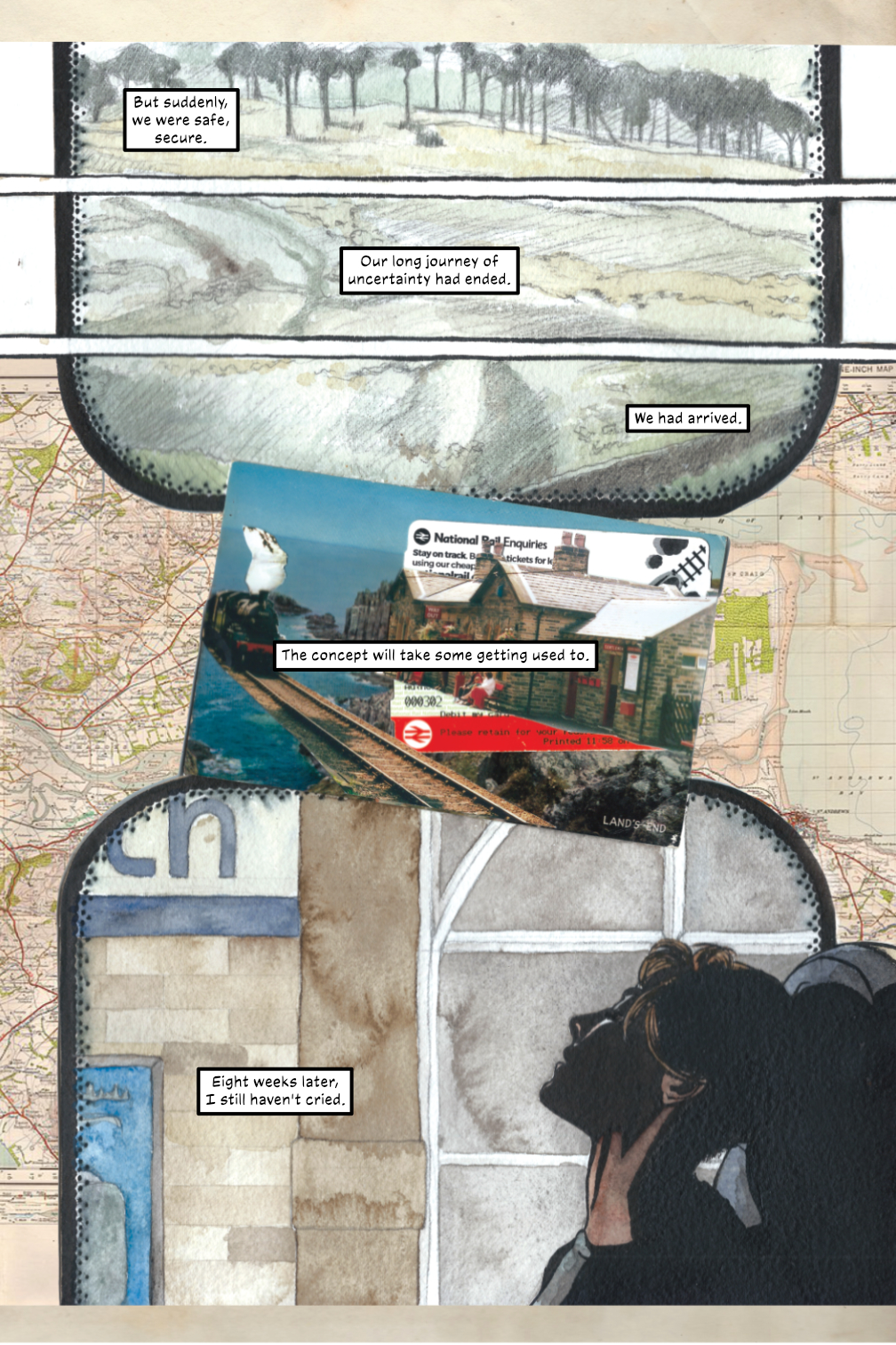 The works are highly experimental, showcasing the development of my signature sequential style and emotionally poetic voice. A unique style that gives the feeling of a particularly intimate diary. The comics are drawn on scraps of graph paper or old newspapers with train tickets and family photographs adding a scrapbooking reality to the visual memories captured on these pages.